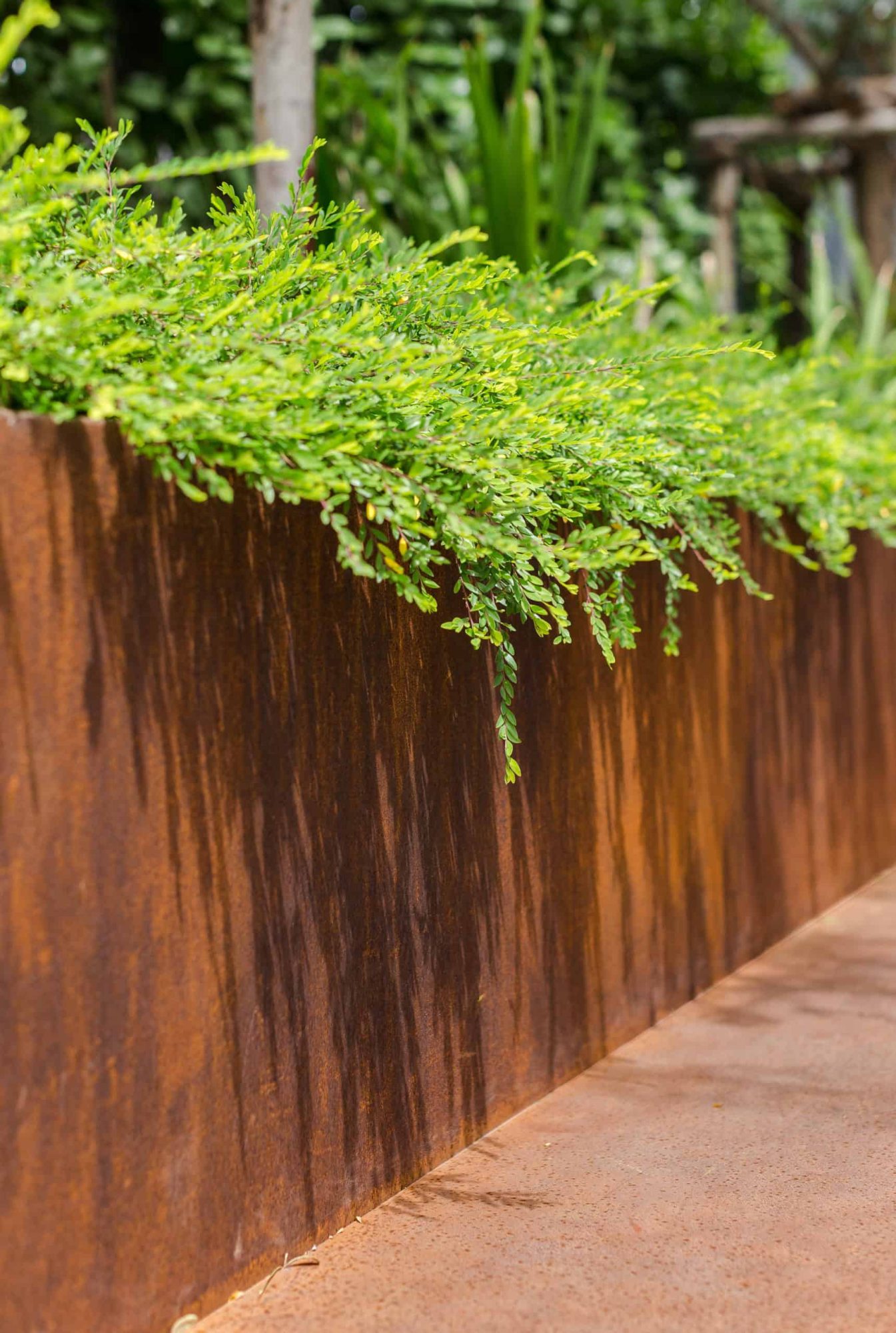 Unlike most other companies, which leave a steel edge or use a single fold, we make our Corten steel modular planter components with a double-folded return lip. This helps to: