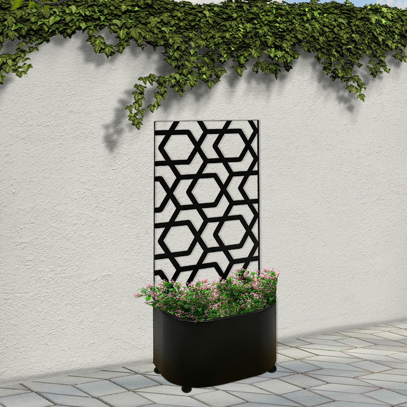 Hive Garden Screen with Rounded Planter | Black Powder Coated